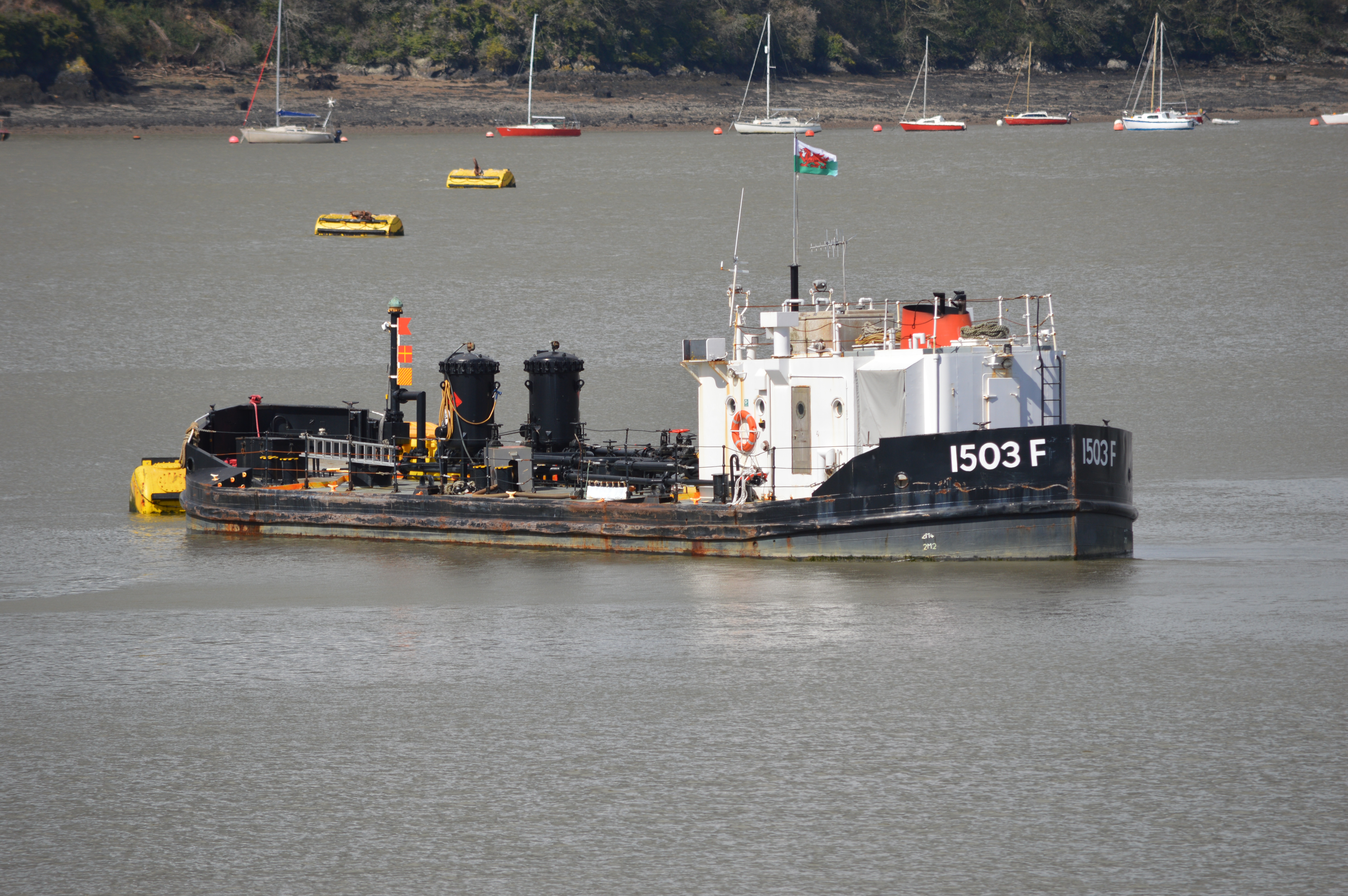 Above: MV Clyde Fisher in 2013, seen with a fuel lighter, 1503F on the near side, loading fuel for delivery to ships moored in the Naval Base. 1503F is shown in close-up below, taken in 2016.