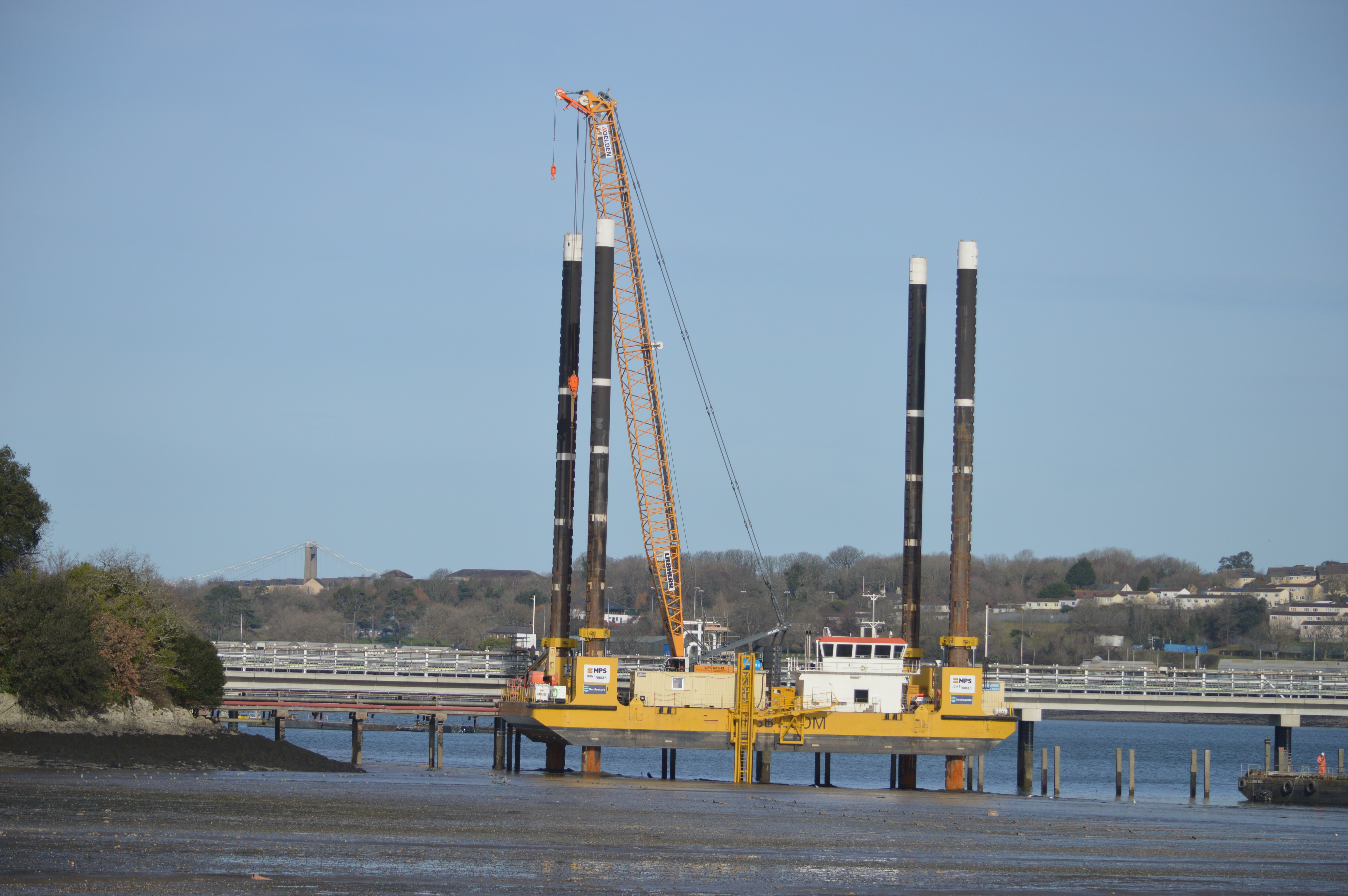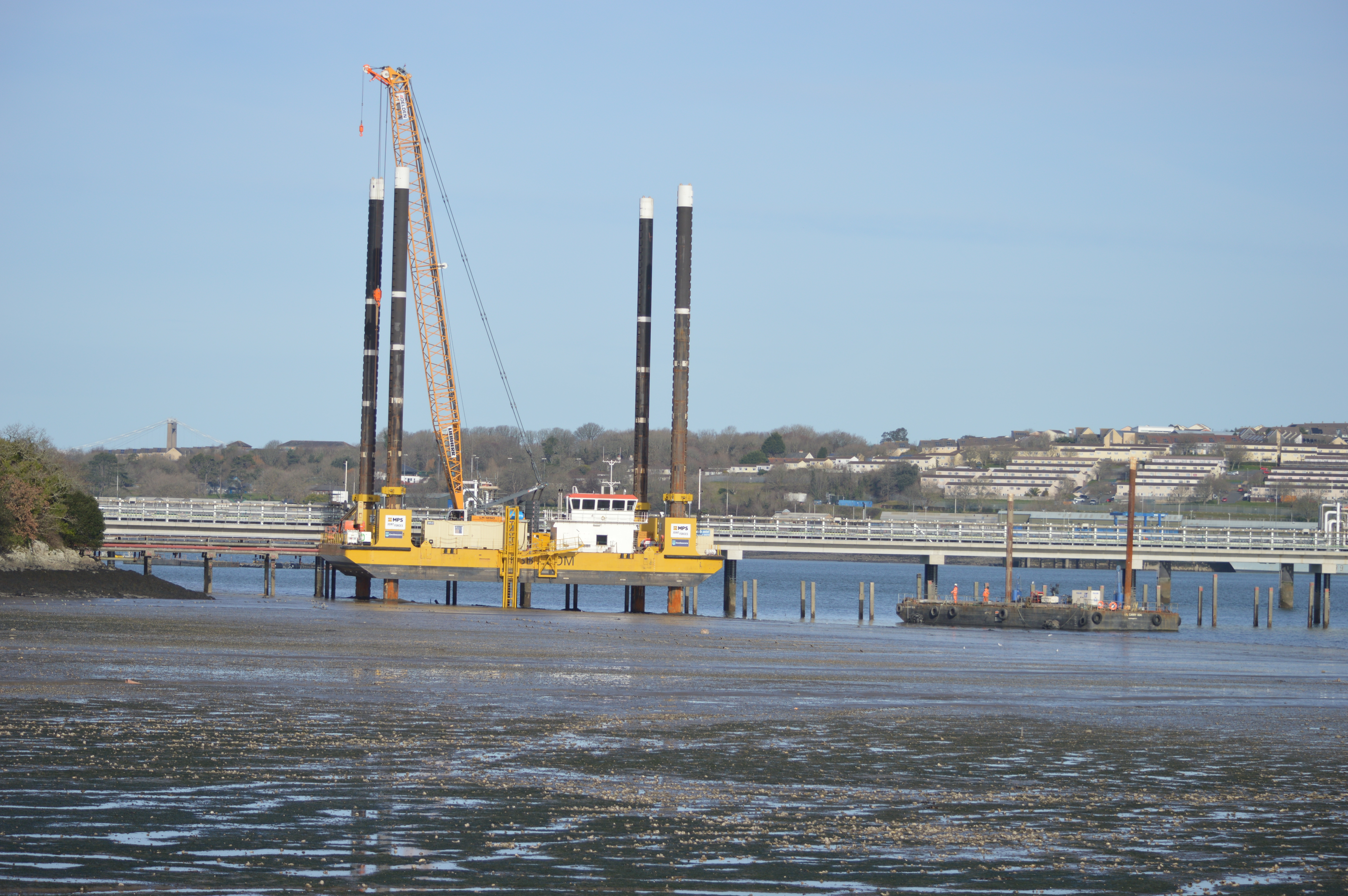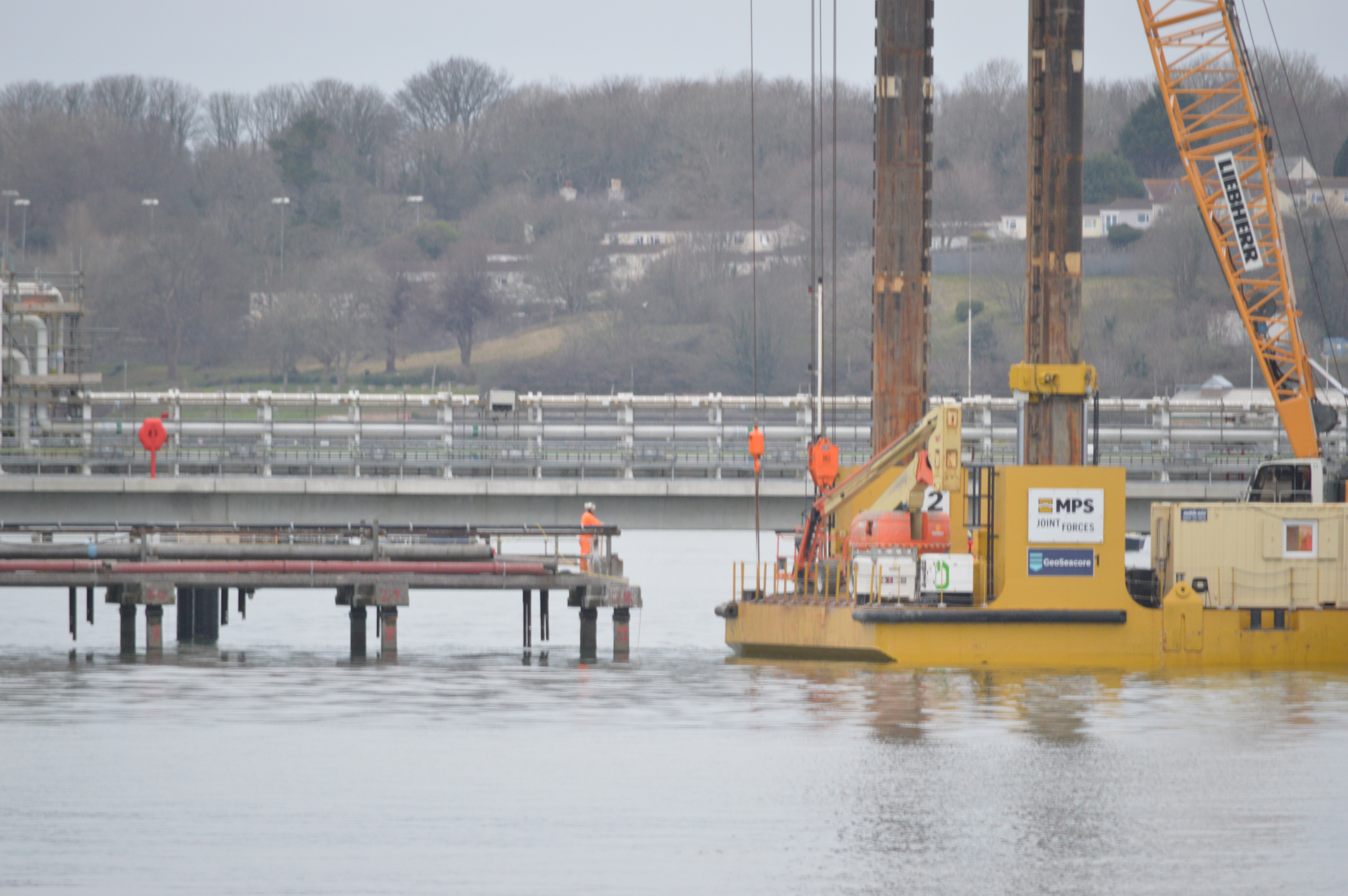 The remains of the old piles still stand proud of the water, waiting to be removed.